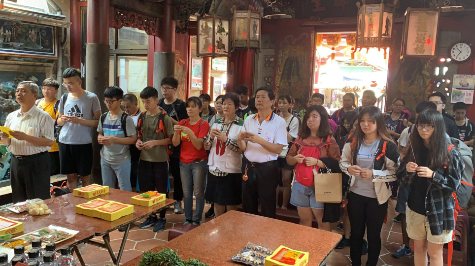 完成「壯遊澎湖夢‧旅費自己籌」的家扶少年,行前齊聚佳里金唐殿祈福袋護身