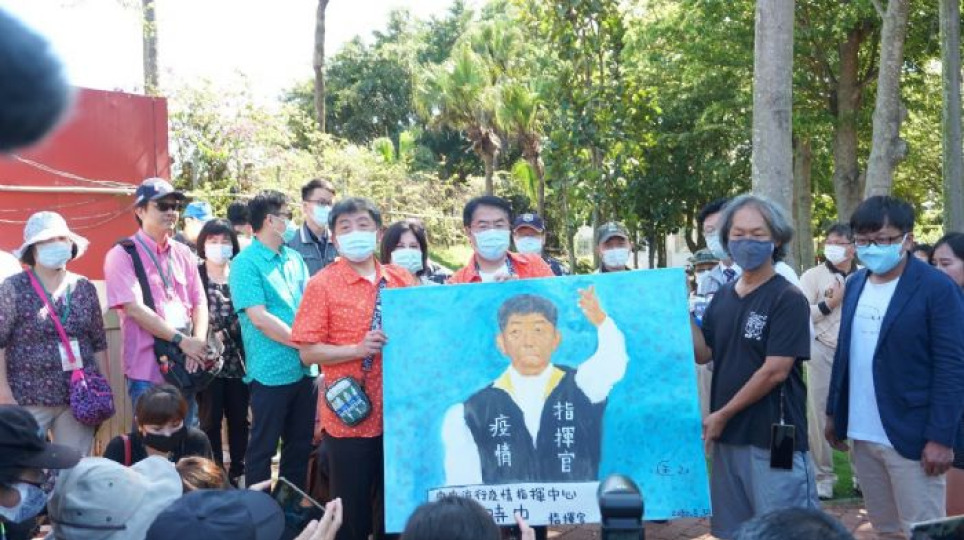 手指畫家大師匡乙以抗疫英雄陳時中畫作贈送指揮官部長陳時中