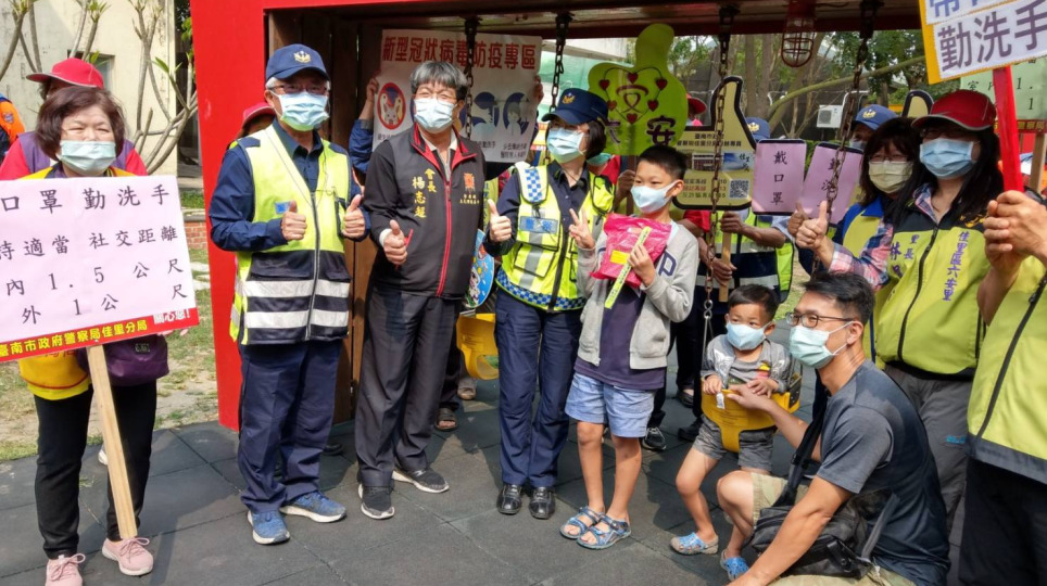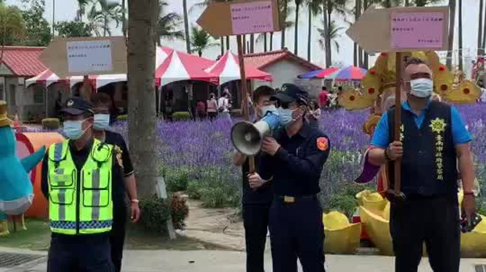 學甲警大聲公宣導「保持社交距離」南市觀光點警方貼心提醒