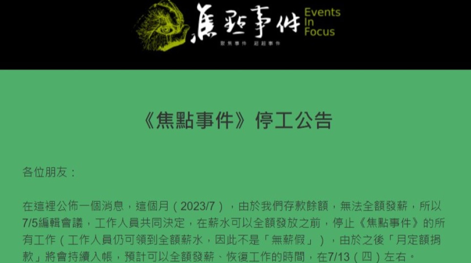 6,544 0 •【評論】對於獨立媒體《焦點事件》近期停工事件的一點雜感
