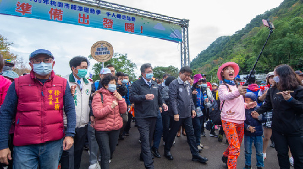109年龍潭運動季千人健走,前立法委員鄭寶清 陪同 市長鄭文燦享受石門水庫美好湖光山色