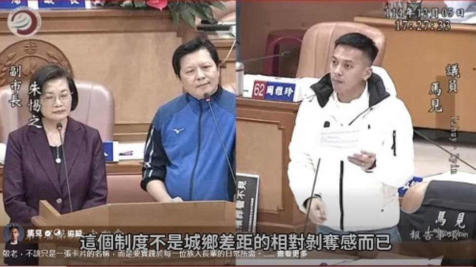 馬見議員疾呼:新北敬老卡應借鏡桃園模式,弭平原鄉長者「看得到、用不到」的政策剝奪