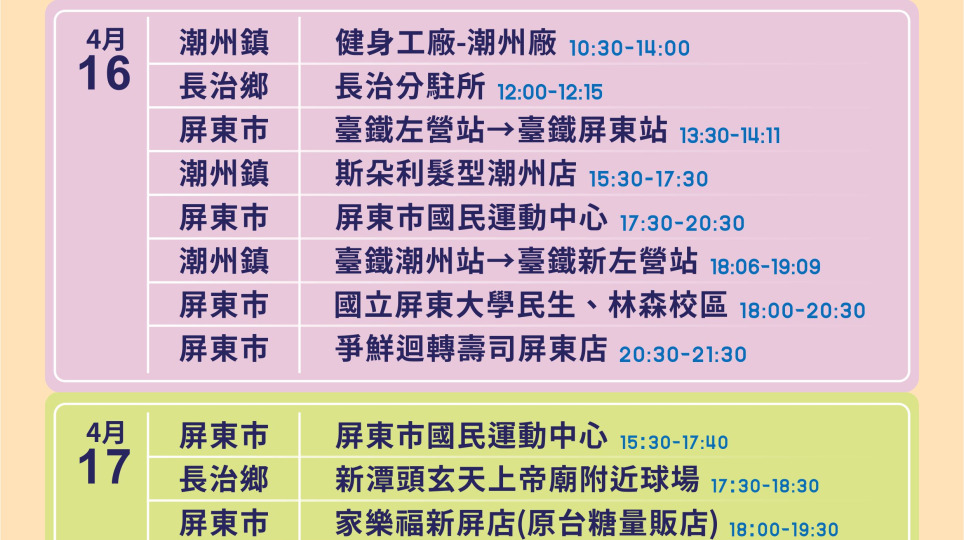 敦睦艦新增1例共5案請民眾提高警覺 屏縣府公布足跡點加強清消