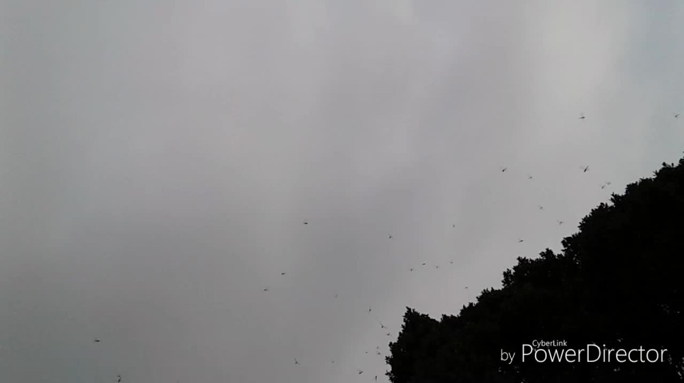 駁二特區哈馬星二舊倉庫軌道公園大樹涼亭數百隻蜻蜓滿天飛
