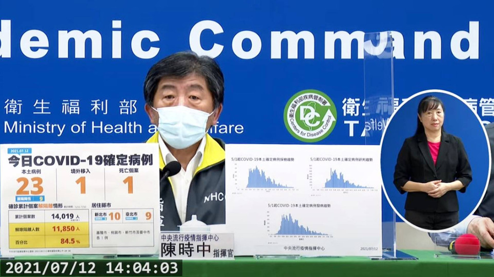 國內疫情7/12新增23本土確診及1境外移入 1人染疫病逝