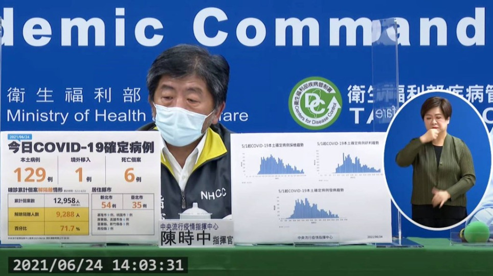 國內疫情6/24新增129本土確診及1境外移入 6人染疫病逝