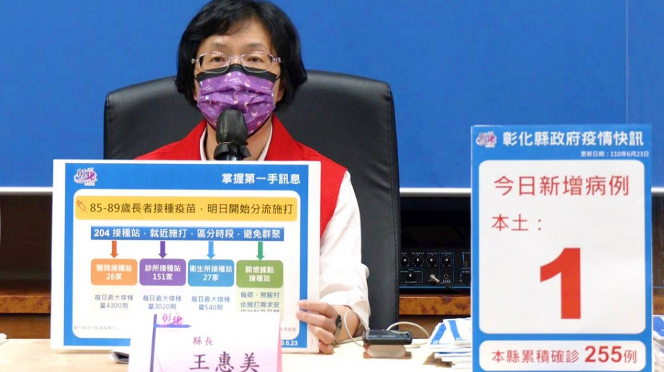 彰化疫情6/23新增1例 85-89歲長者明天開打疫苗