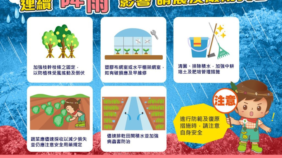 豪大雨防農災 農糧署籲請農民加強農作物防範措施