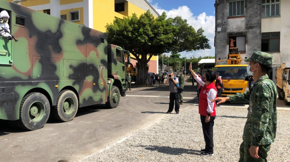 化學兵群挺進彰化執行消毒任務 王惠美向國軍致敬頒感謝狀