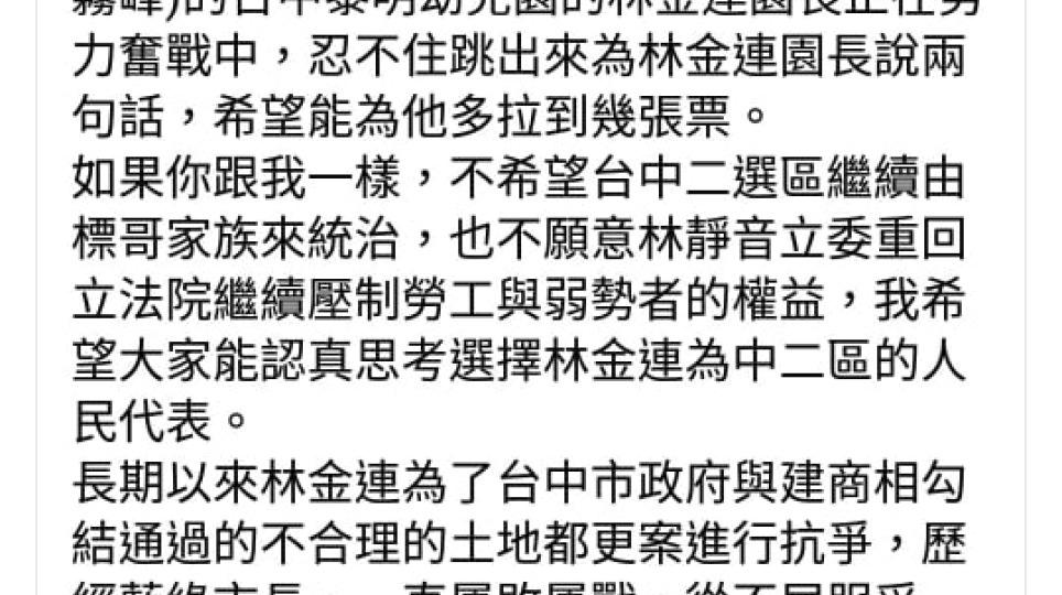 打破藍綠綁架 秋鬥幹部台中補選力挺林金連