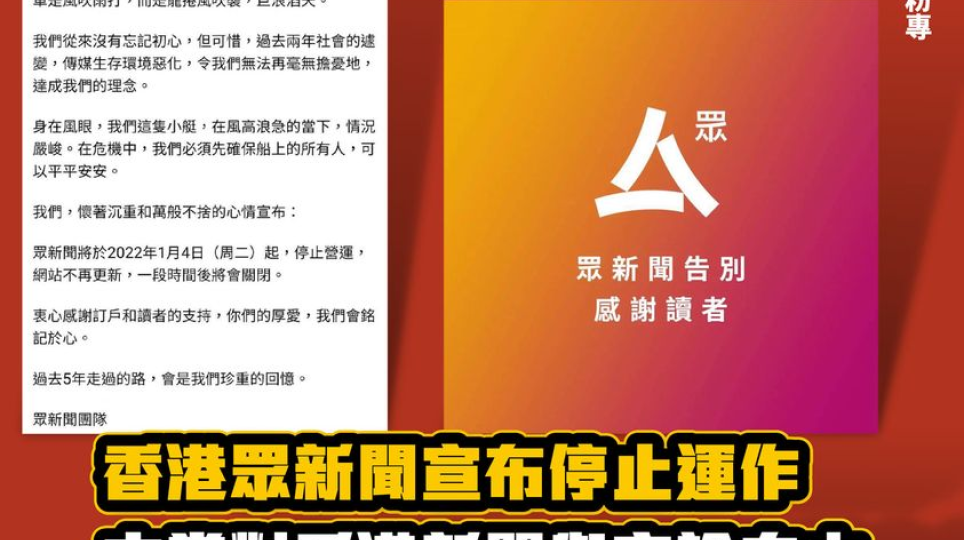 多家媒體接連關閉 中國青年黨憂香港言論自由惡化