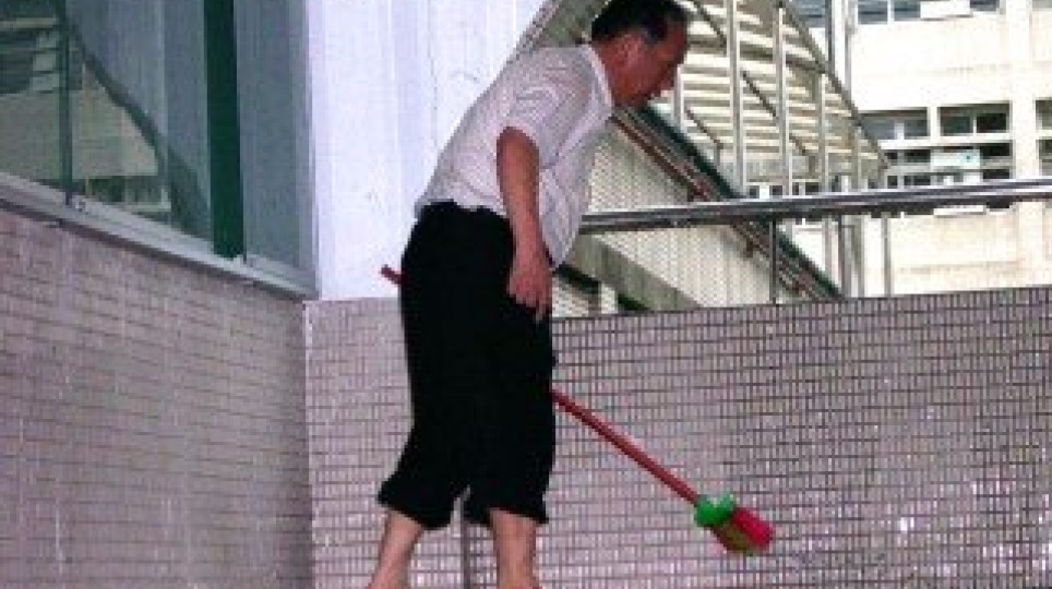 雷雨後內湖高工校長率領同仁清洗樓梯