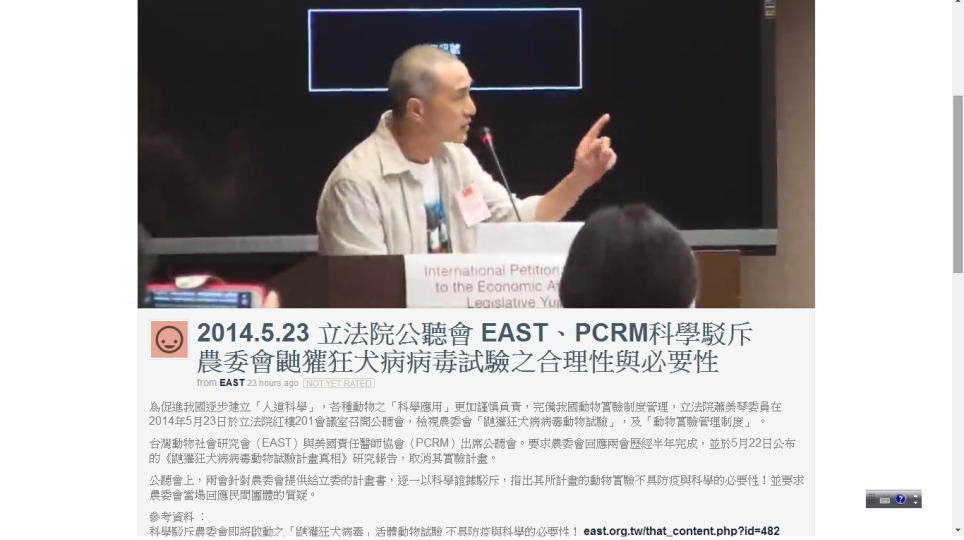 2014.5.23 立法院公聽會 EAST、PCRM科學駁斥農委會鼬獾狂犬病病毒試驗之合理性與必要性 影音記錄
