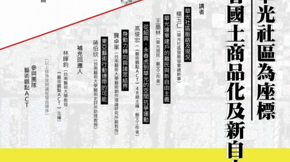 敬邀【華光社區為座標─看國土商品化及新自由主義在台灣】活動10/10(一)下午3點~5點