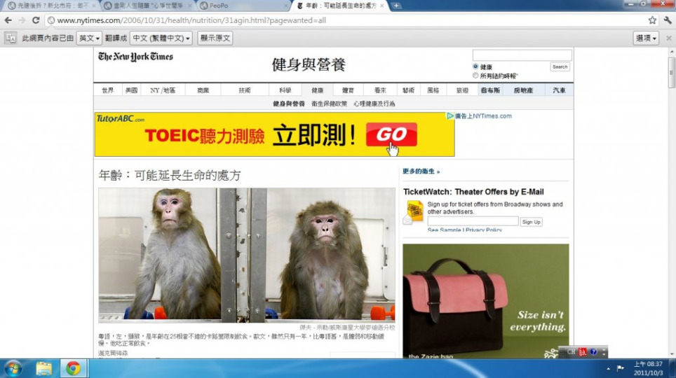 延緩老化的處方:少吃長壽 讀 " One for the Ages: A Prescription That May Extend Life / Calorie Restriction vs. Normal Diet " 有感
