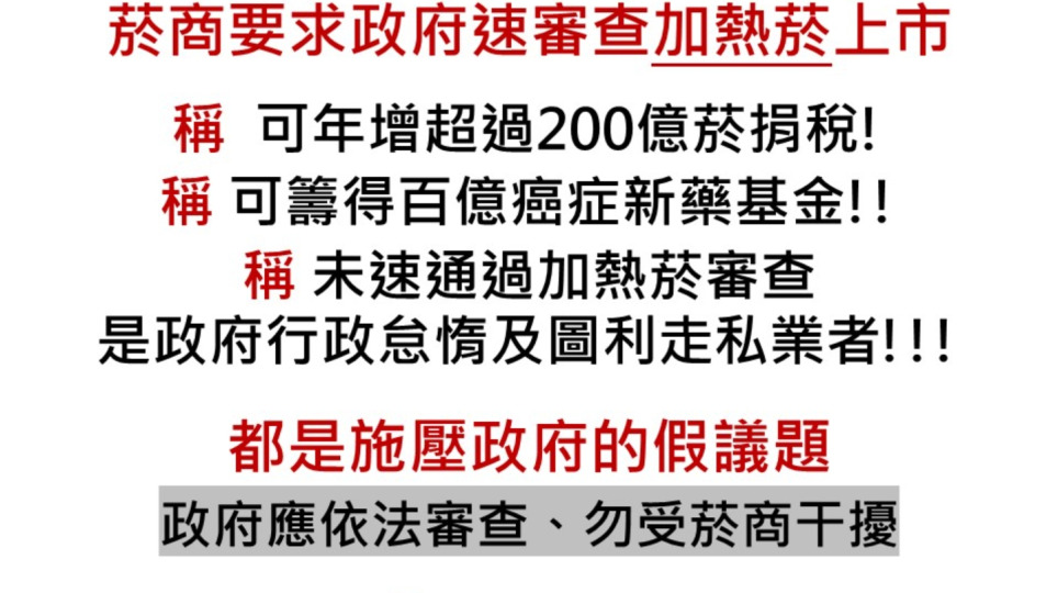 逼「健康台灣」速放行加熱菸上市 菸商謊話連篇