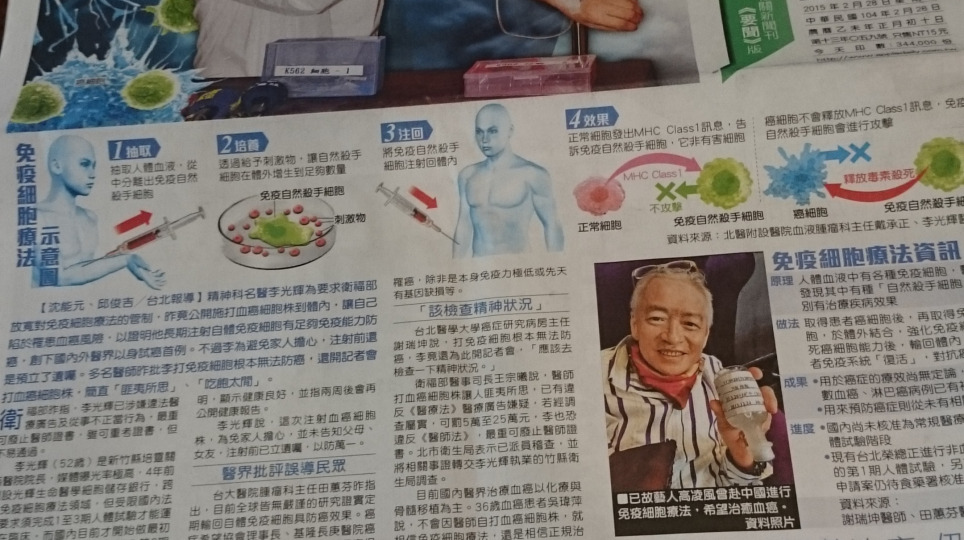 精神科名醫李光輝是聖人還真是神經病?日本厚生勞動省於2006年將免疫細胞療法列為常規療法 台灣名醫以身試法可能撤照?