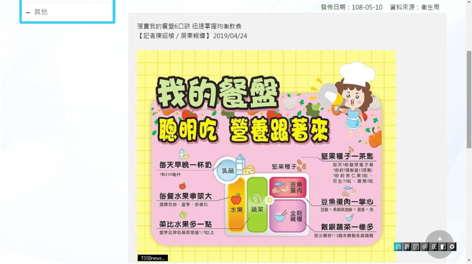國民健康署發表了「我的餐盤」六口訣 健康飲食從此台灣在地化 健康自我管理(四上)
