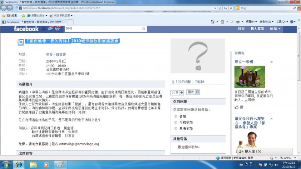 『藍色地球-我的海洋』2010城市游牧影展座談會 -轉載