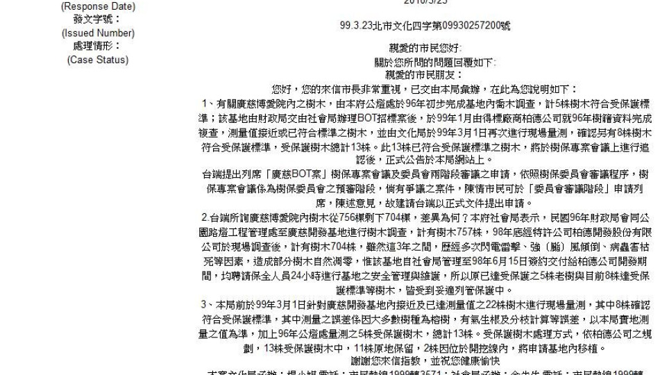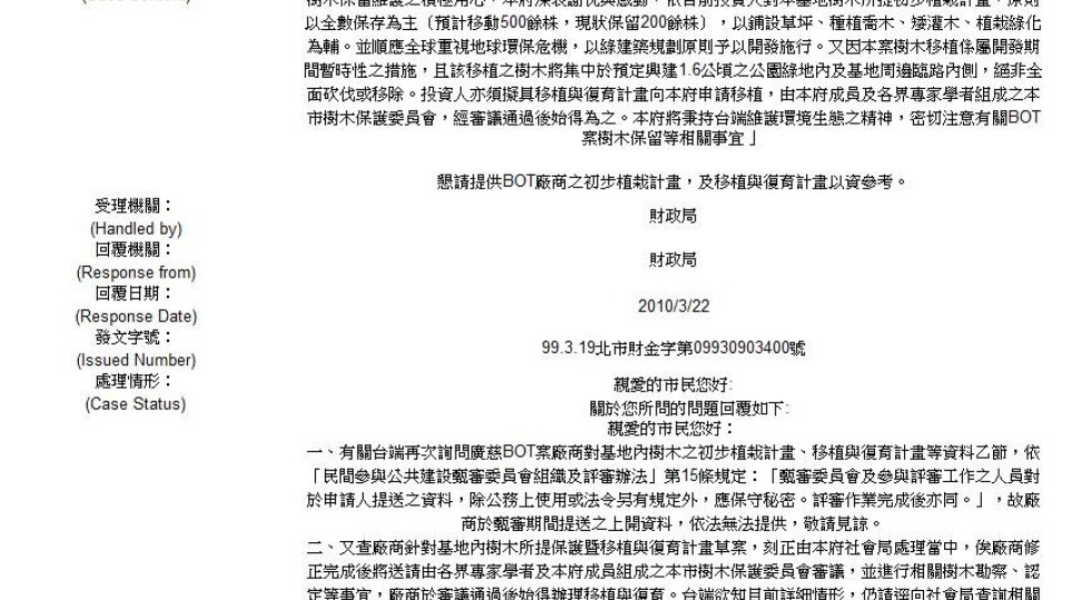 市長信箱/答:資訊透明化是在保護誰?以廣慈BOT案為例(系列報導三十九)