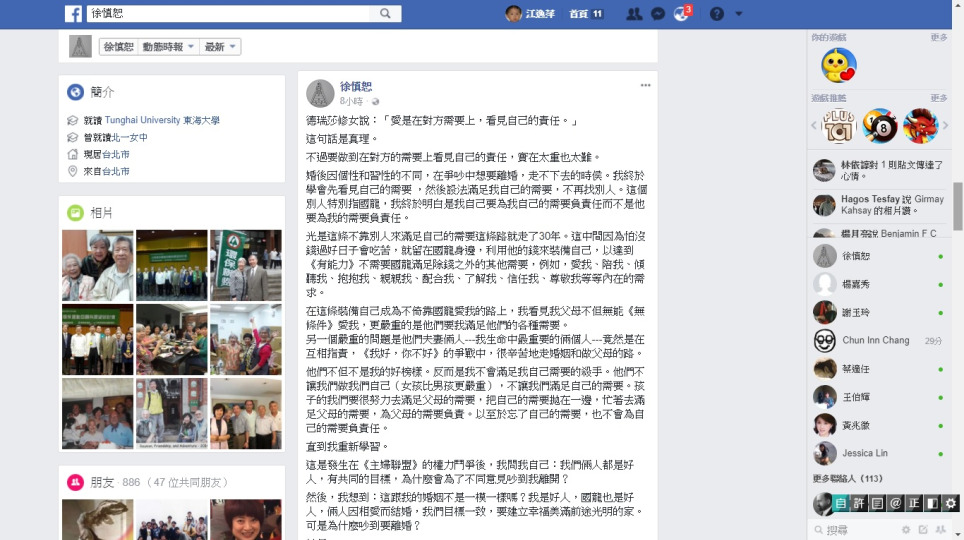 徐慎恕:我心很安,聖靈帶領我看出我內在的苦毒。。。沒有喜悅的犧牲奉獻不是愛。