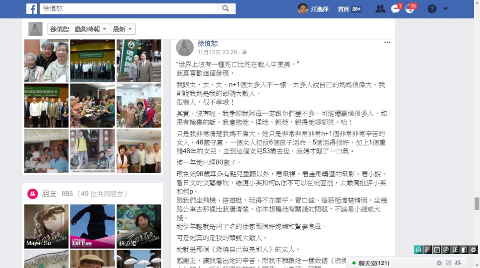 徐慎恕:她就是那個《燃燒自己照亮別人》的女人。