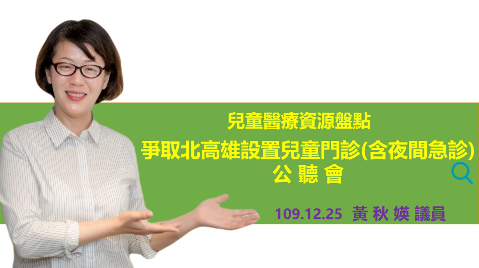 黃秋媖:呼籲市府醫療團隊要緊緊緊 加快腳步落實保障北高雄兒童醫療權益(1部影片)