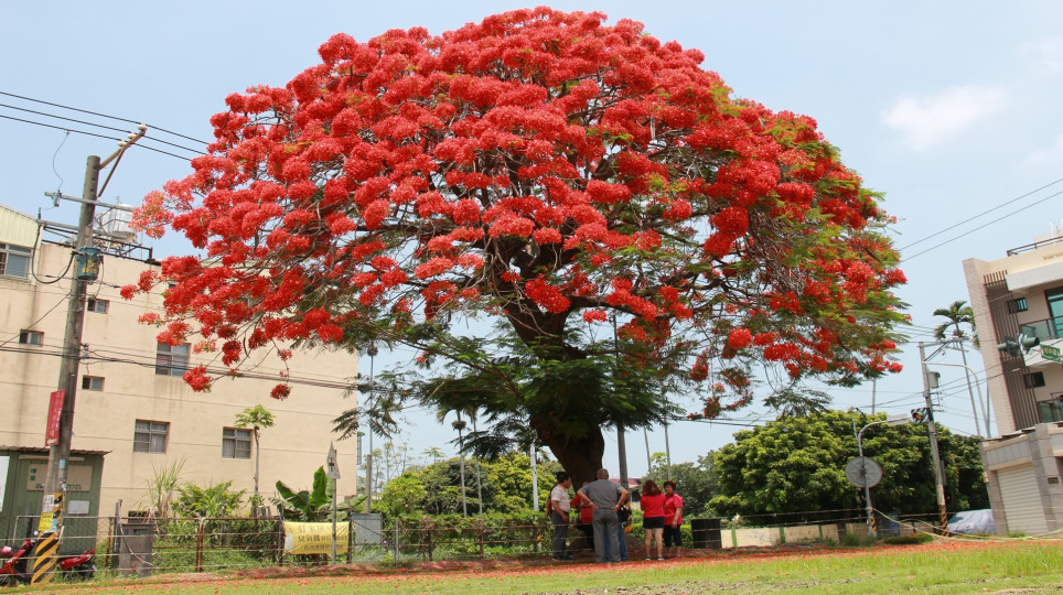 彰化北斗鎮鳳凰木老樹 鳳凰花紅色巨傘吸睛