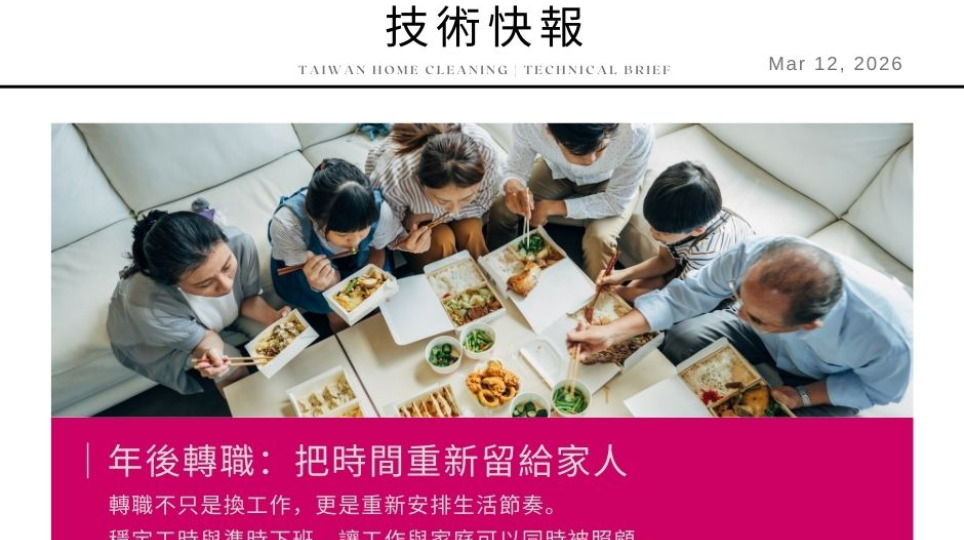 台灣居家清潔 技術快報 │ 家庭優先 北高推育兒減工時 七工時制度成產業觀察指標