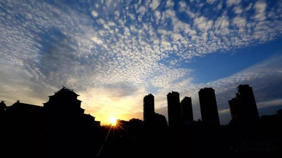 濱海石獅的黃昏 城市輪廓伴紅霞飛舞