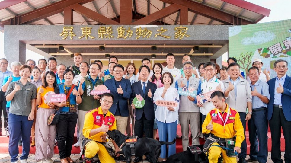 屏東縣動物之家揭牌啟用 總統賴清德出席認養截肢流浪犬