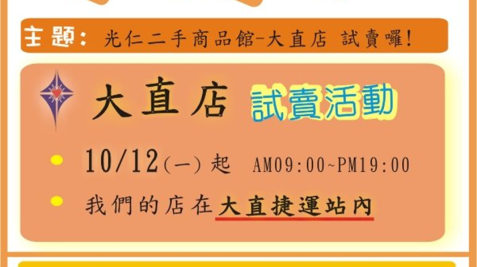 光仁二手商品館-大直店 10/12(一)起開始試賣!