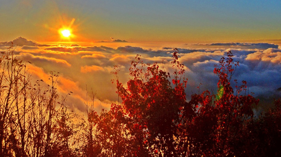 山頭一笑惹情痴 放看萬千浮雲過山