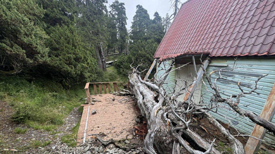 又是颱風惹的禍 高大圓柏倒塌致雪北山屋部分毀損 暫時封閉