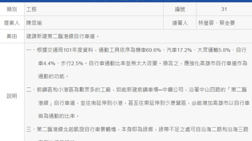 高市議員陳信瑜催生臨港自行車綠廊