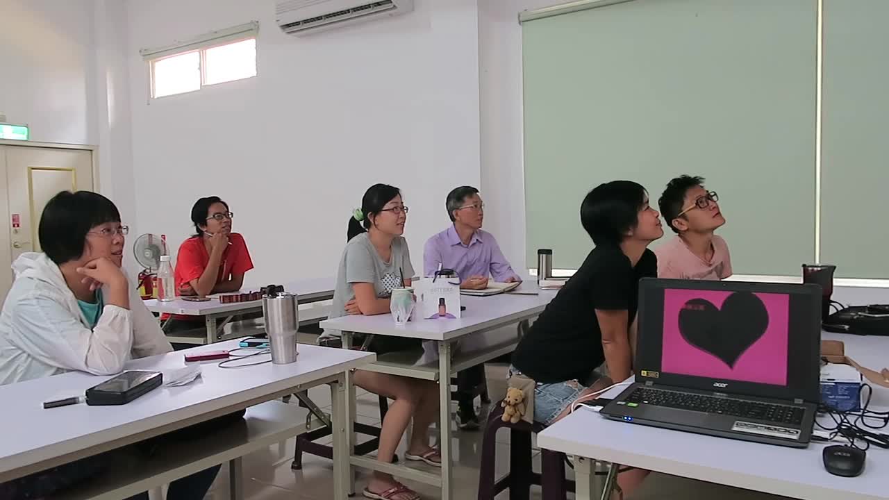 在孩子的嬉戲、哭鬧聲中,一群年輕媽媽爸爸推著嬰兒車,帶著還在地上爬或學走路的小奶娃,聚集在一起學習當公民記者!課堂進行時,爸媽即使必需經常分心去「處理」小孩子的狀況,大家仍然拉長耳朵,注意聽講前面老師的上課內容,時不時加入發言討論。