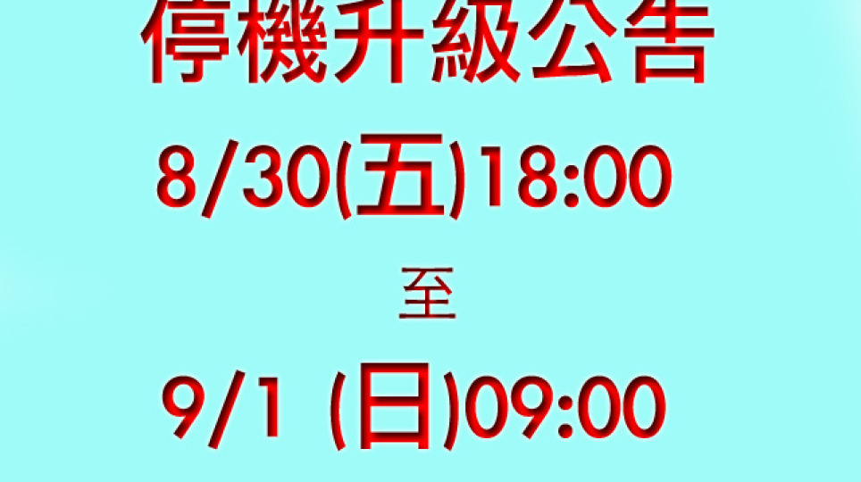8/30系統停機升級公告
