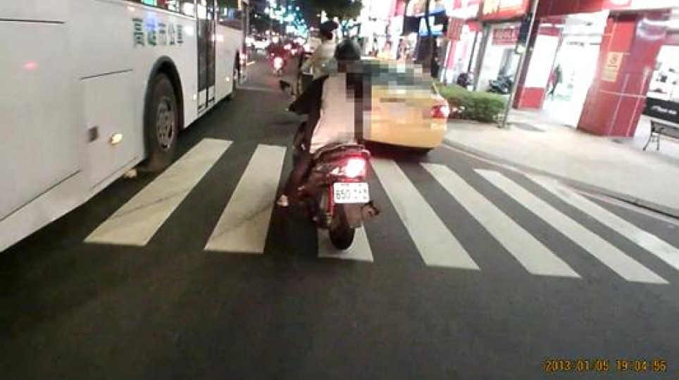 不斷重演!機車被違規停車與公車夾擊