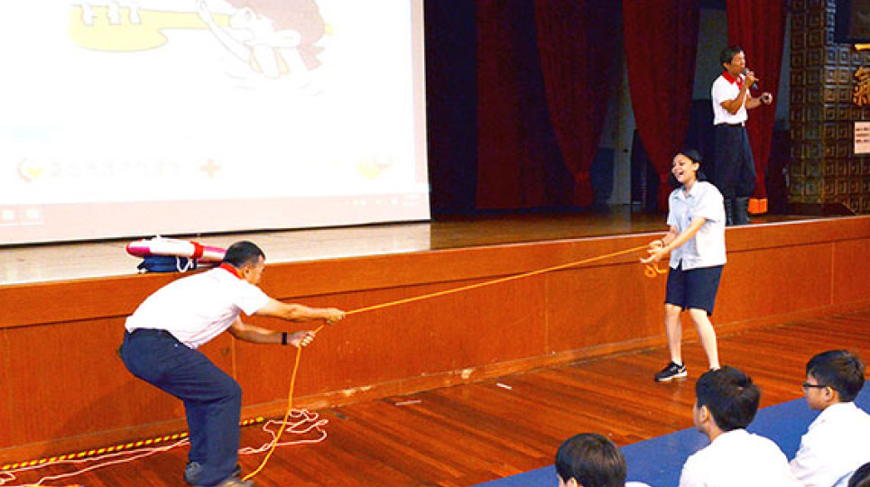 【學童演練丟擲拋繩袋、救生圈、保特瓶救人一命】龍山國小