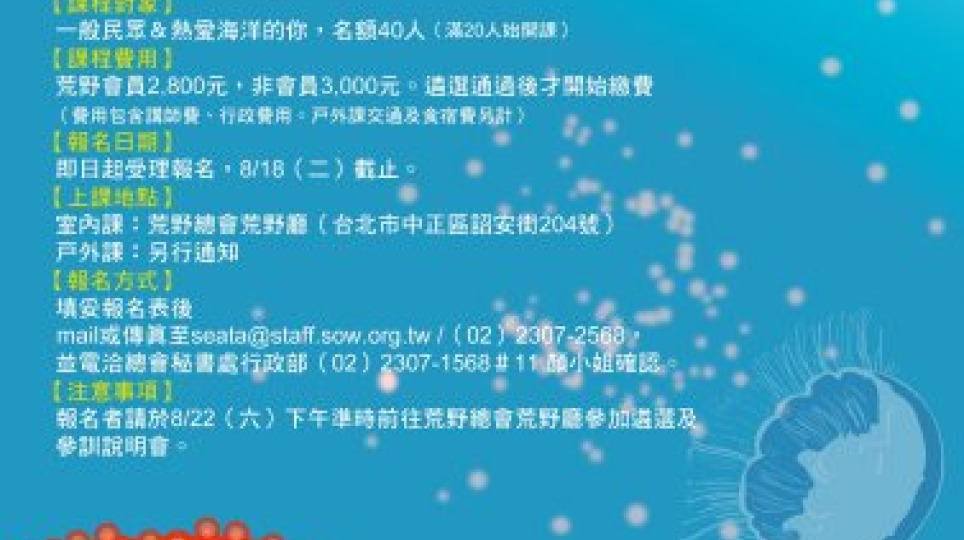 守護海洋、海洋守護~荒野第二期海洋關懷志工招生中