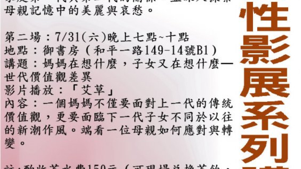 7/24.31女性影展~歡迎到御書房看電影