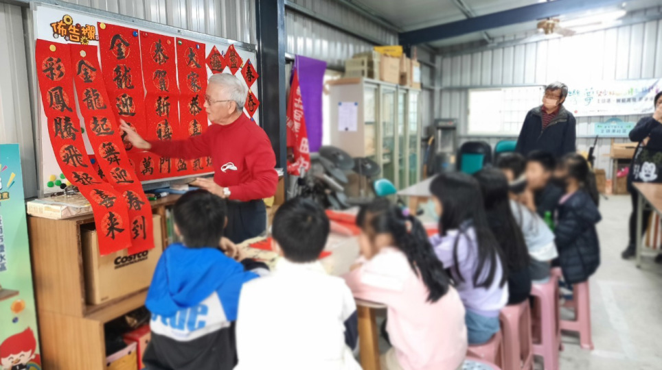新營社大書法社春聯教學 陪伴鹽水坔頭港學童過新年