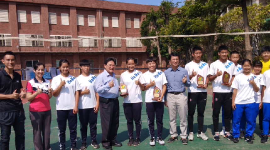 和美高中排球隊在沙排賽成績優異 邱建富頒「彰化之光」獎座