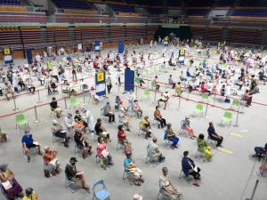 屏東縣長周春米攜飲品青檸貼布 探班慰問百工修繕團