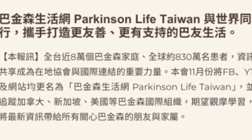 巴金森生活網 Parkinson Life Taiwan 與世界同行