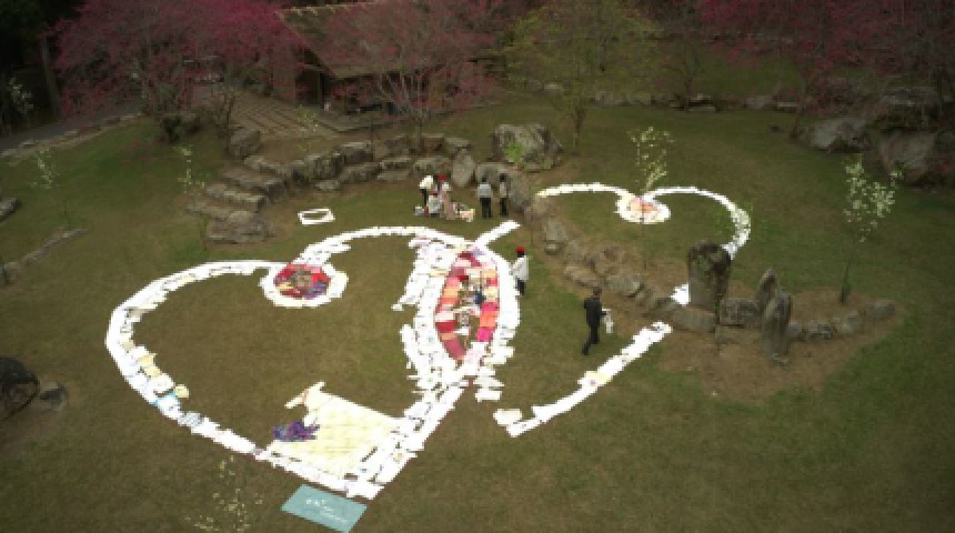 滿山櫻花見證的雪櫻愛情 眾人聯手共創愛心大地拼圖創作
