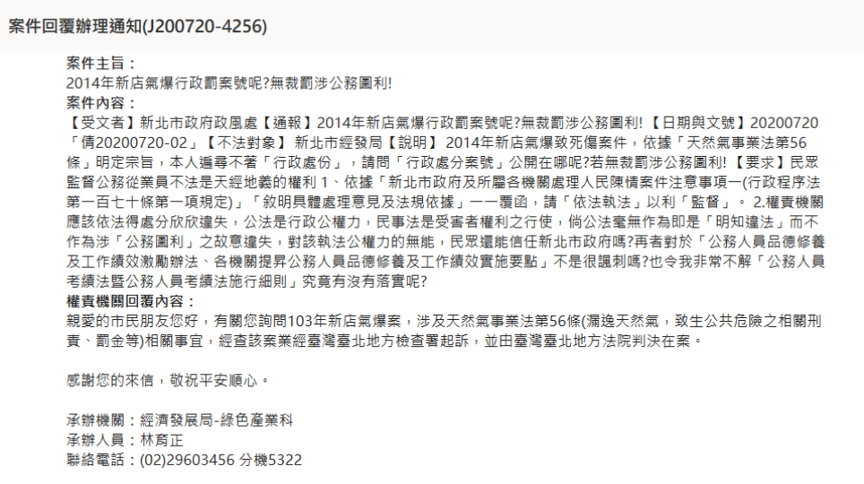 29,576 1 •新北市政府針對「新店氣爆致死傷案」之行政罰究竟裁罰了沒有呢?