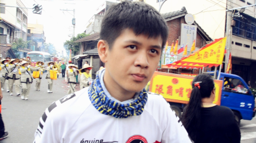 南瑤宮媽祖田尾信徒簇擁 單車環島旅人虔誠「鑽轎腳」
