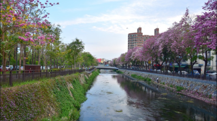 興大綠川洋紅風鈴木盛開 吸引民眾捕捉美好時刻