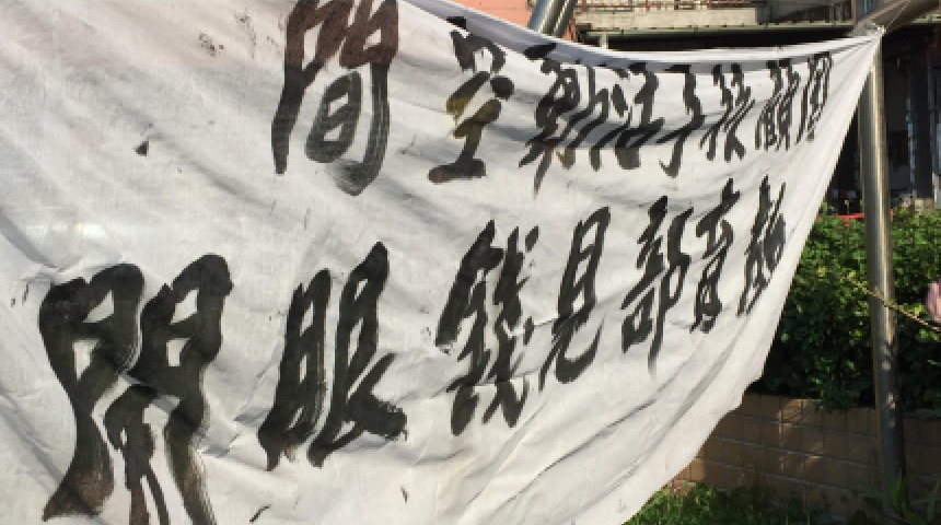 教師新村公園租財團 居民拉起白布條